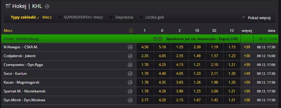 Jak wspomnieliśmy, kibice hokejowych drużyn nie tylko dopingują swoim faworytom podczas meczów lub telewizyjnych transmisji, ale również obstawiają zakłady bukmacherskie na hokej na lodzie u legalnych bukmacherów internetowych. W Polsce rozbudowaną ofertę na hokej ma każdy z bukmacherów z TOP rankingu (TU ranking najlepszych buków na 2025), a więc m.in. Fortuna, LVBET czy Superbet.