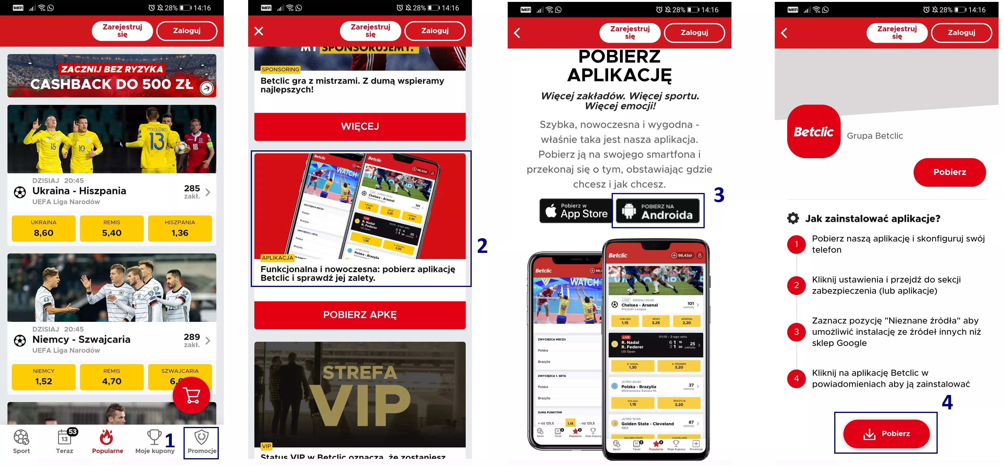 Jak już wspomnieliśmy powyżej, przez politykę firmy Google aplikacji mobilnej Betclic nie znajdziecie w sklepie Google Play. Na szczęście jest prosty sposób, aby pobrać ją na swój telefon i w pełni cieszyć się wszystkimi możliwościami, jakie daje Wam ten legalny bukmacher o światowym rozgłosie.