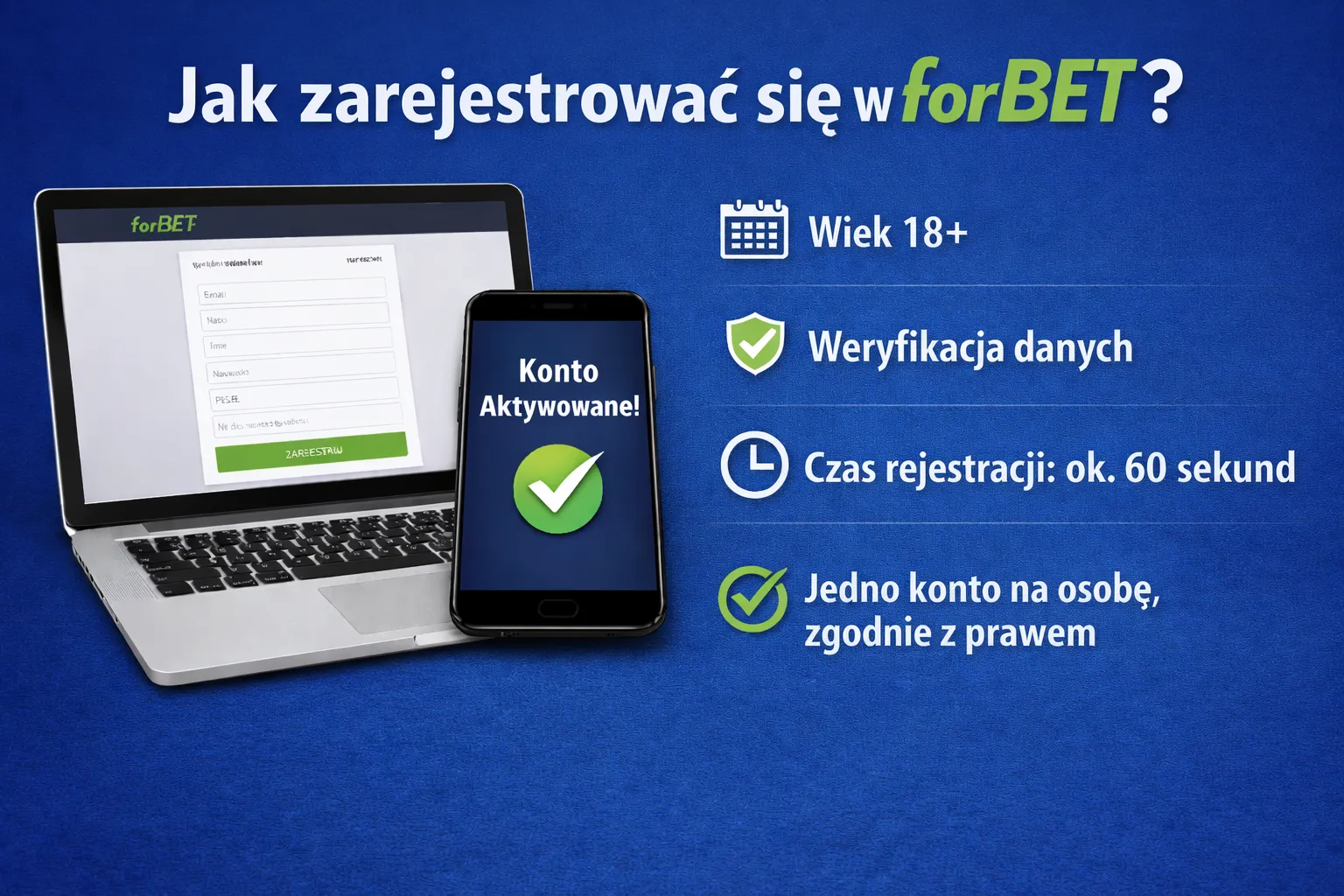 Osoba wyszukująca frazę „jak zarejestrować się w forBET” chce przede wszystkim wiedzieć jakie dane są wymagane, czy trzeba przesyłać dokument tożsamości, ile trwa aktywacja, a także kiedy można wpłacić środki i rozpocząć grę. Poniżej znajdziesz kompletną instrukcję rejestracji konta, która pomoże założyć profil gracza w około 60 sekund. Aktualizacja danych: czwartek, 12 marca 2026.