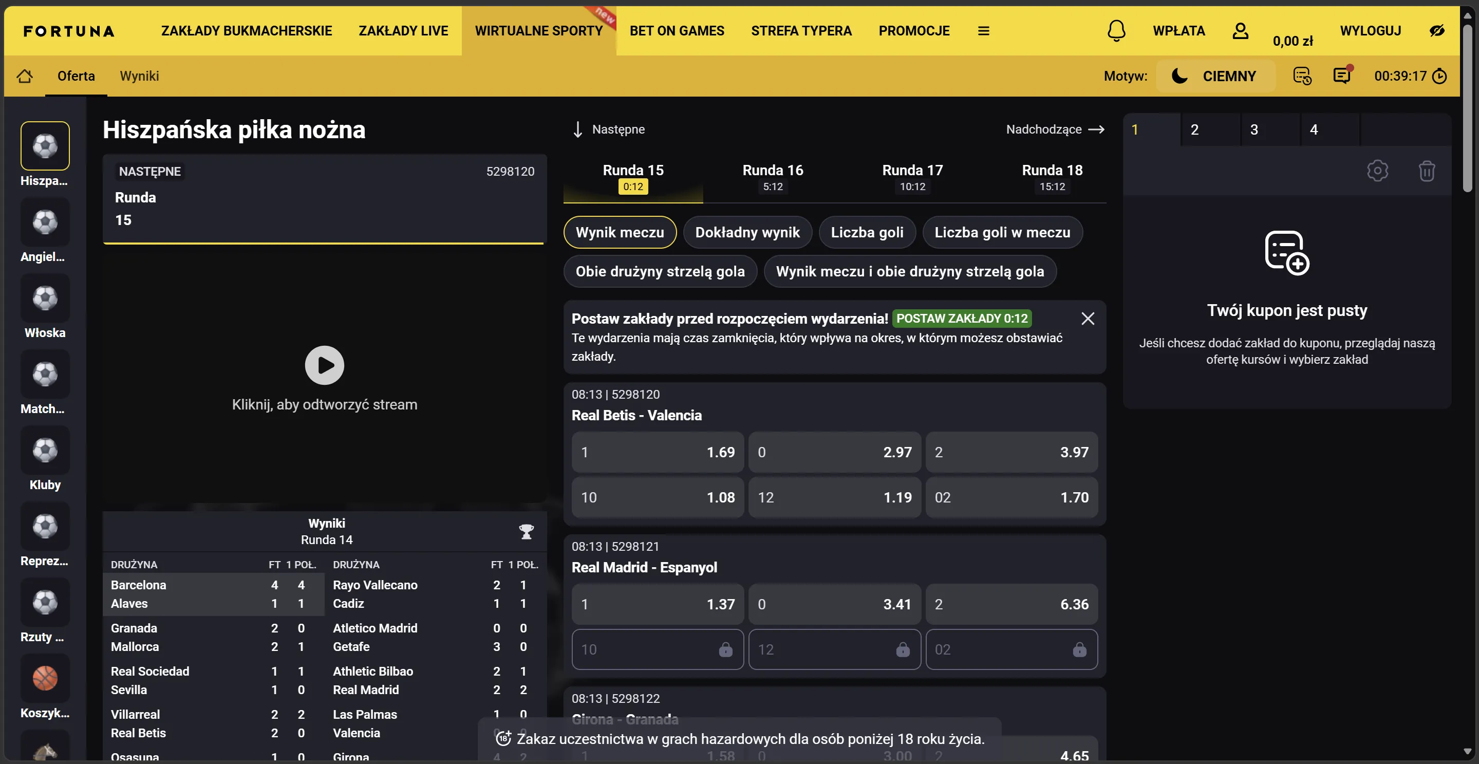 Czy w Fortunie sporty wirtualne są ustawione?