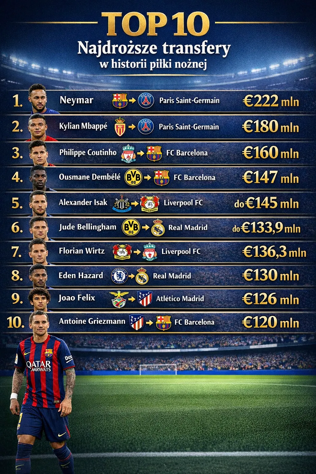 TOP10 najdroższych transferów w historii piłki nożnej