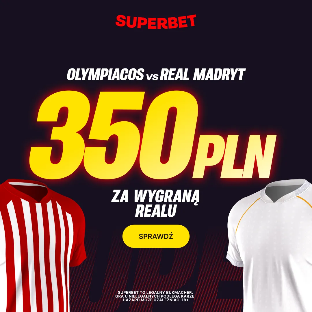 Aktualna promocja na Olympiakos - Real Madryt przygotowana przez legalnego bukmachera Superbet.