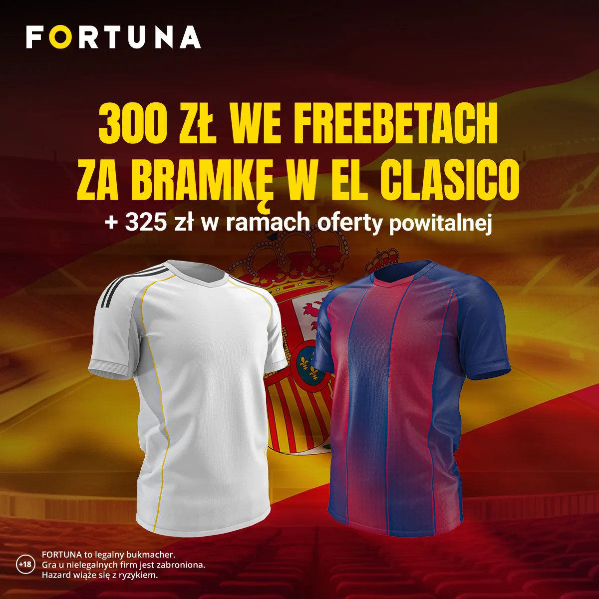 Jak wziąć udział w bukmacherskiej promocji "Freebety o wartości 300 zł za bramkę w El Clasico" od Fortuny?