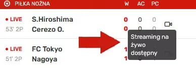 - po zalogowaniu przejdź do sekcji zakładów na żywo (LIVE) i wybierz wydarzenie oznaczone ikoną transmisji, aby uruchomić stream.