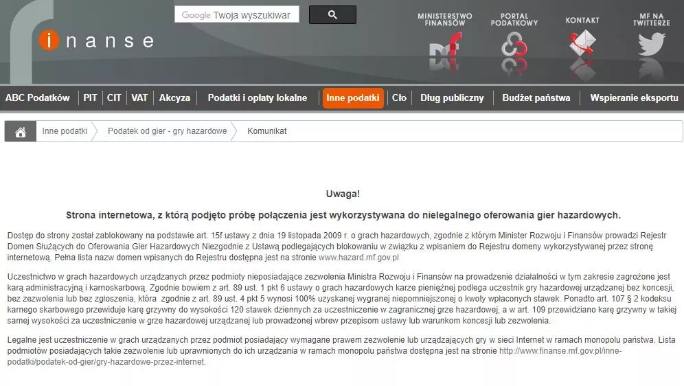 - Od 1 lipca 2017 r. funkcjonuje rejestr domen zakazanych – umieszczone w nim nielegalne witryny hazardowe są blokowane przez operatorów Internetu i dostawców płatności