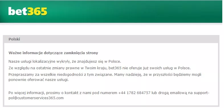 W marcu 2017 r. o zaprzestaniu świadczenia usług w naszym kraju poinformował światowy gigant branży hazardowej, czyli firma Bet365, której stronę – według danych Gemius Audience – przed 1 kwietnia 2017 r. odwiedzało miesięcznie nawet 4 mln polskich internautów. W prowadzonym przez resort finansów Rejestrze Domen Służących do Oferowania Gier Hazardowych Niezgodnie z Ustawą znajdują się adresy również innych, jeszcze niedawno bardzo popularnych wśród polskich graczy firm bukmacherskich, czyli Unibetu oraz bet-at-home.