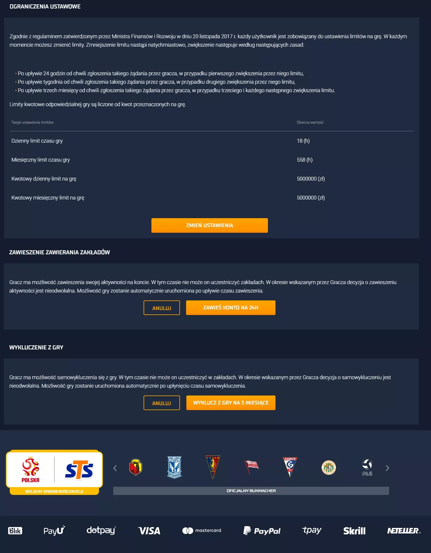 Wszystkie limity można ustawić z poziomu profilu do typowania. Wystarczy wejść w ustawienia konta - u dowolnego bukmachera z licencją Ministerstwa Finansów - i znaleźć zakładkę "limity użytkownika" lub "limity bukmacherskie".