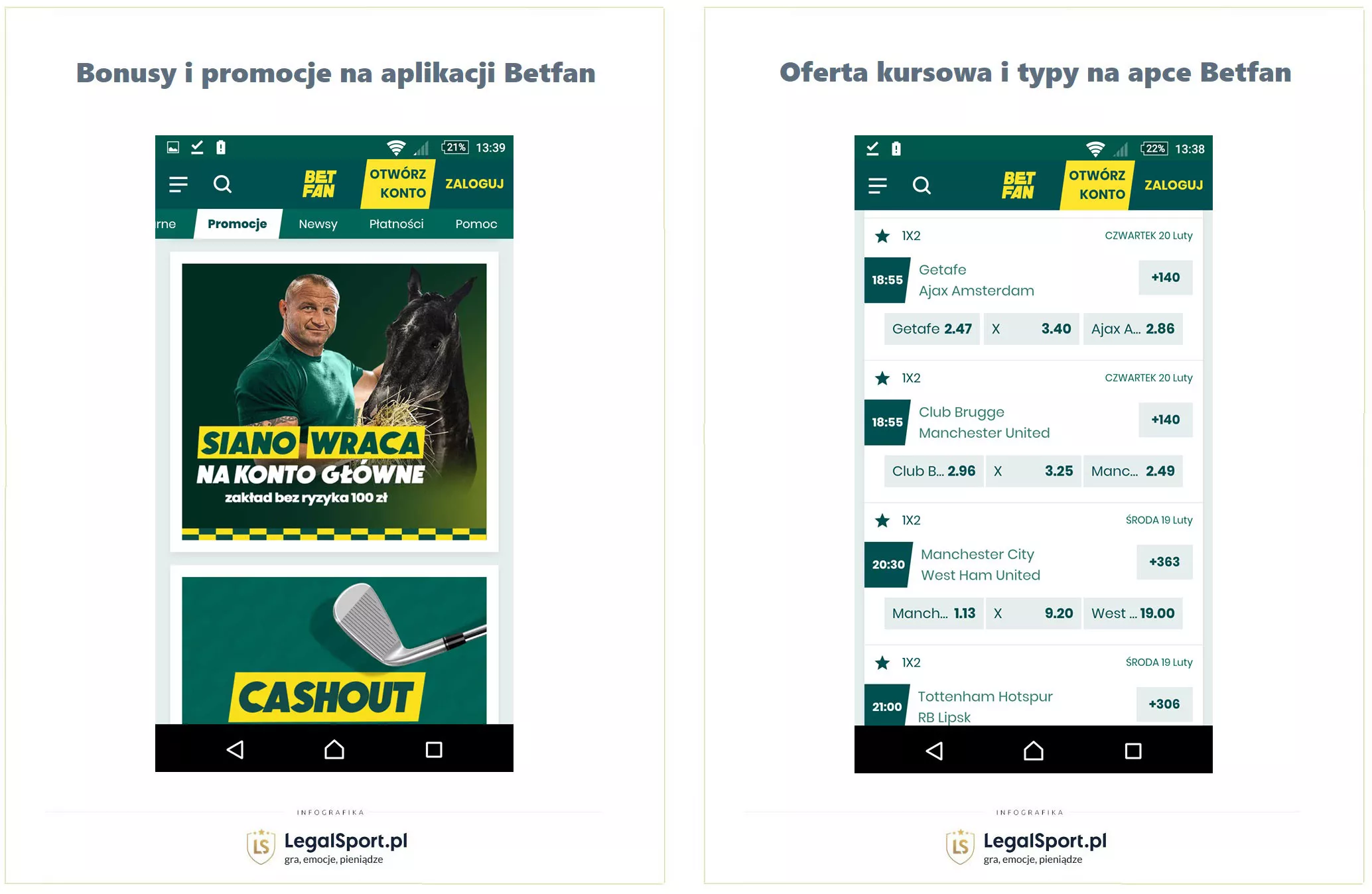 Dlatego też aplikacja mobilna jest aż tak bardzo popularna wśród typerów. Oczywiście apka to w stu procentach odbicie strony internetowej. W efekcie za jej pomocą można typować nie tylko zakłady przedmeczowe, ale również i LIVE. Co więcej, Betfan App pozwala wpłacać depozyty, wypłacać wygrane oraz realizować dochodowe bonusy, w tym bonus na start z naszym kodem promocyjnym [ LEGALSPORT ].