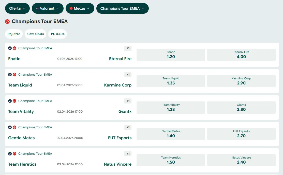 To szczególnie ważne dlatego, że ten segment nie jest jednolity. Jeden operator może mieć bardzo szeroką ofertę na Counter-Strike 2 i Valorant, ale skromniejszą na League of Legends czy Dota 2. Inny może oferować dużo meczów, ale ograniczać się do podstawowych rynków, przez co gracz ma mniej opcji strategicznych. Jeszcze inny może mieć bardzo dobrą sekcję LIVE, ale słabsze kursy na etapie przedsprzedaży.