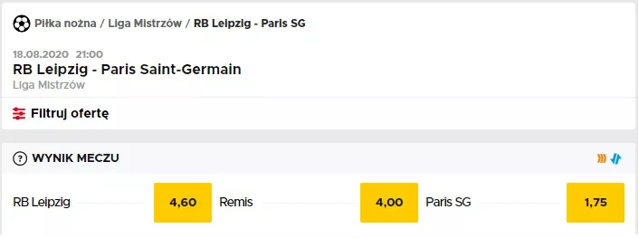 W Betlic kursy na selekcje piłkarskie często biją na głowę konkurencję. Wystarczy, że na tapet weźmiemy spotkanie w 1/2 finału Ligi Mistrzów pomiędzy RB Lipsk a PSG.