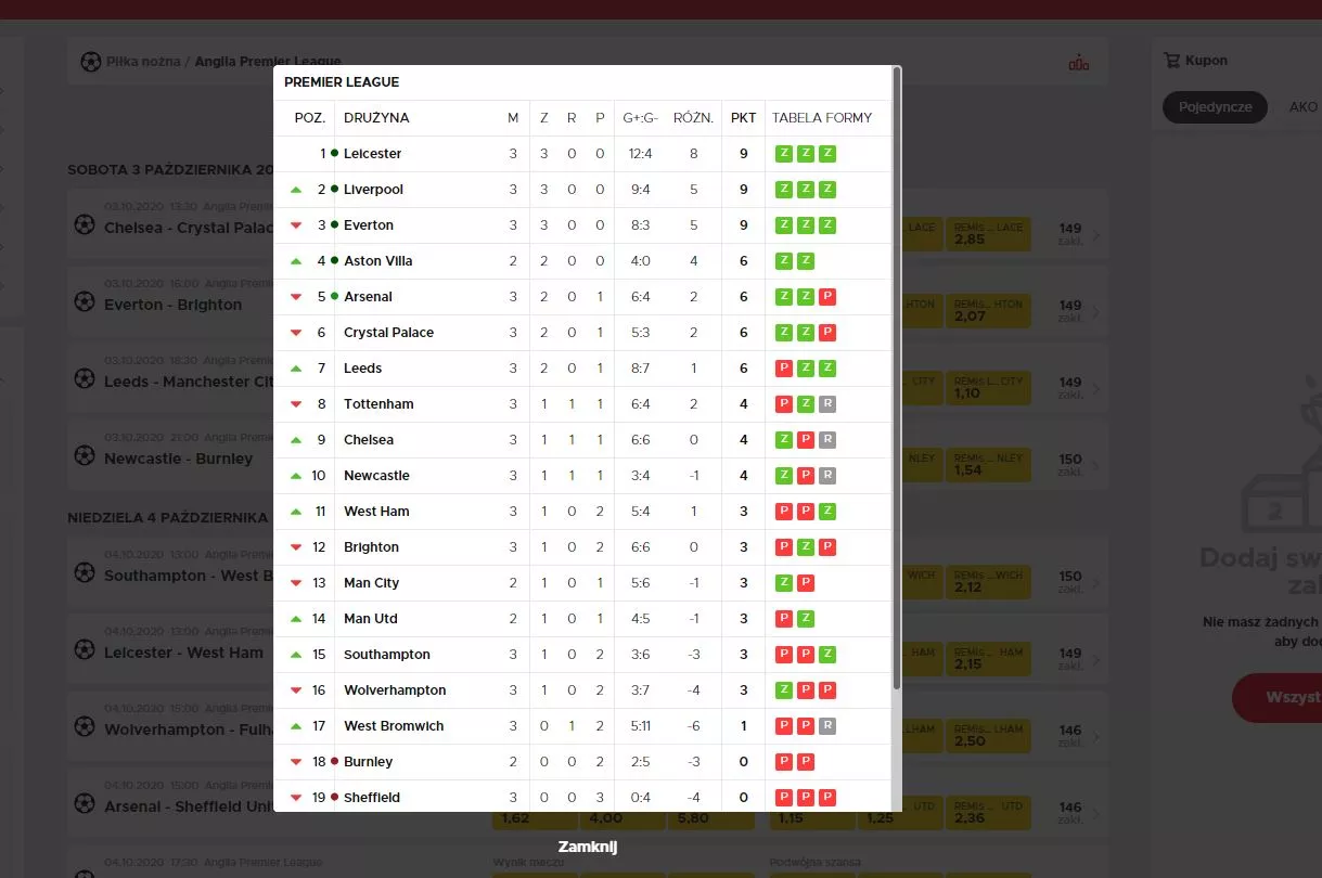 Co istotne, w poszukiwaniu danych przydatnych w typowaniu piłki nożnej w Betclic, wcale nie musicie odwiedzać zewnętrznych portali. Najważniejsze statystyki sportowe znajdziecie bezpośrednio na stronie głównej sponsora głównego Piasta Gliwice. Aby wejść w interesujące Was statystyki, musicie wybrać rozgrywki, a następnie na samej górze strony, obok nazwy rozgrywek, kliknąć w ikonkę z wykresem słupkowym.