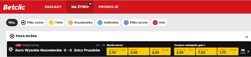 Warto zaznaczyć, że w wielu konkurencyjnych firmach próżno szukać wielu rozgrywek, dostępnych w Betclic (np. w tym samym czasie w STS brakowało zakładów na piłkarskie pojedynki w Chile, a w Totolotku na rywalizację ligową w Czarnogórze).