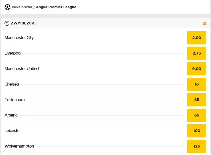 W Betclic po znacznie większą wygraną sięgnąć można na zakładach na mistrza Anglii – u tego buka współczynnik na zwycięstwo Manchesteru City wynosi 2.00, a Liverpoolu 2.75. Z kolei forBET wspomniane scenariusze wycenił kolejno na kurs 1.93 i 2.60. Oczywiście u sponsora głównego Piastunek obstawiać możecie również inne zakłady długoterminowe – np. selekcje na TOP2 , TOP4 i TOP6 oraz typy na spadek.