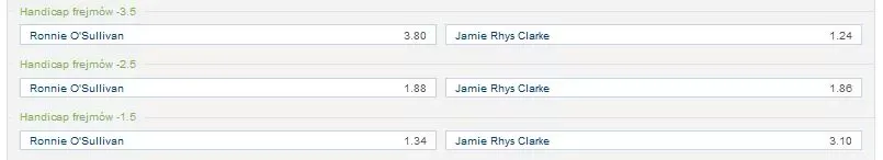 Kolejnym często wykorzystywanym rynkiem jest handicap frejmów (frame handicap). W ofercie bukmacherów występuje on jako linia dodatnia lub ujemna, przykładowo -2.5 lub +1.5 frejma. W meczu do 6 wygranych partii linia -2.5 oznacza konieczność zwycięstwa minimum 6:3. Rynek ten znajduje zastosowanie w sytuacji wyraźnej dysproporcji klas między zawodnikami, szczególnie gdy faworyt notuje wysoką średnią punktów na podejście i regularnie buduje breaki 50+. Korzyść dla gracza polega na podniesieniu kursu w stosunku do czystego zwycięstwa – zamiast 1.30 można uzyskać poziom 1.70–1.90, zachowując racjonalne ryzyko przy odpowiedniej analizie formy.