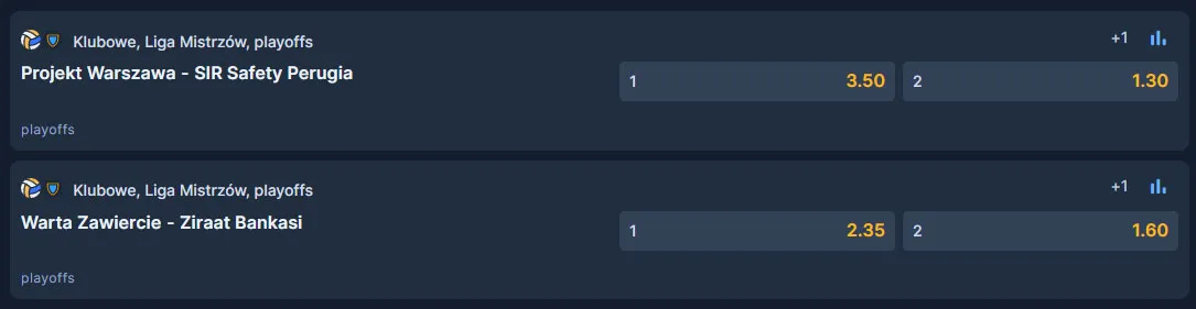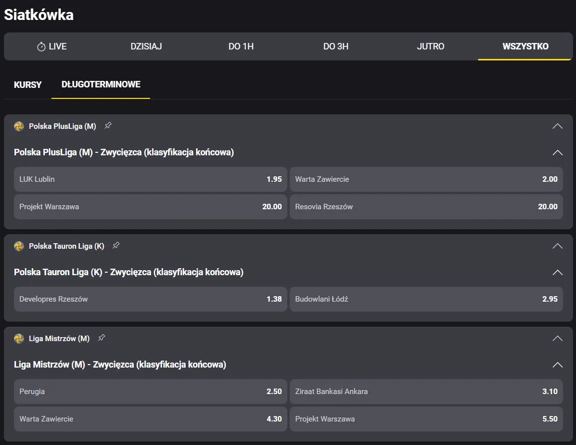 topowe ligi siatkówki → najwięcej rynków zdarzeń i stabilne kursy