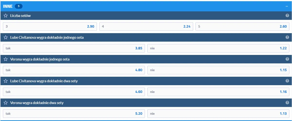 Najlepiej zacząć od zakładów z handicapem -1.5 seta, liczby setów i liczby punktów - to rynki najprostsze i najbardziej powtarzalne dla nowych graczy obstawiających volleyball.
