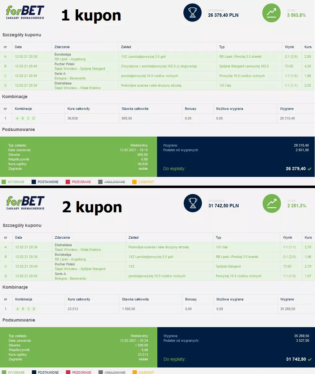 Mega wygrana z dwóch kuponów w forBET