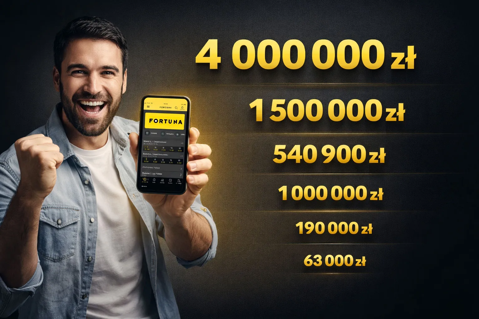 Od 2 zł do ponad 540 000 zł. Od 850 zł inwestycji do blisko 4 milionów wygranych u graczy zarejestrowanych w Fortunie. Te historie udowadniają, że marzenia naprawdę się spełniają. Sprawdź, jakimi typami i strategiami gracze rozbili bank u jednego z największych bukmacherów w Polsce!.