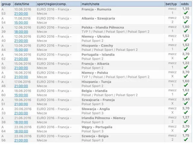 Kupon obejmował spotkania fazy grupowej Euro. Typujący zdecydował się na różne rynki zakładów, głównie klasyczne typy na zwycięzcę meczu. Wśród zdarzeń znalazły się między innymi spotkania Francja – Rumunia, Albania – Szwajcaria, Polska – Irlandia Północna, Niemcy – Ukraina, Hiszpania – Czechy czy Portugalia – Islandia. Szczególnie emocjonujące okazały się dwa ostatnie mecze na kuponie: Węgry – Portugalia oraz Belgia – Szwecja, które ostatecznie przesądziły o pełnym sukcesie gracza.